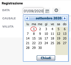 Selezionando la riga (con il selettore laterale, o cliccando sulla riga stessa) si può procedere a modificare o riempire i campi. I campi adesso sono attivi, in comunicazione continua con il server, e, grazie a feedback visuali in tempo reale, l'utente può comprendere se sta inserendo dati in modo corretto. Ad esempio, se mancano dati fondamentali per procedere al salvataggio, il bordo inferiore del campo in inserimento è evidenziato in rosso, ad indicare che in quella riga ci sono campi obbligatori non inseriti, mentre, sul lato sinistro della riga, al posto della freccia del selettore, appare un punto esclamativo